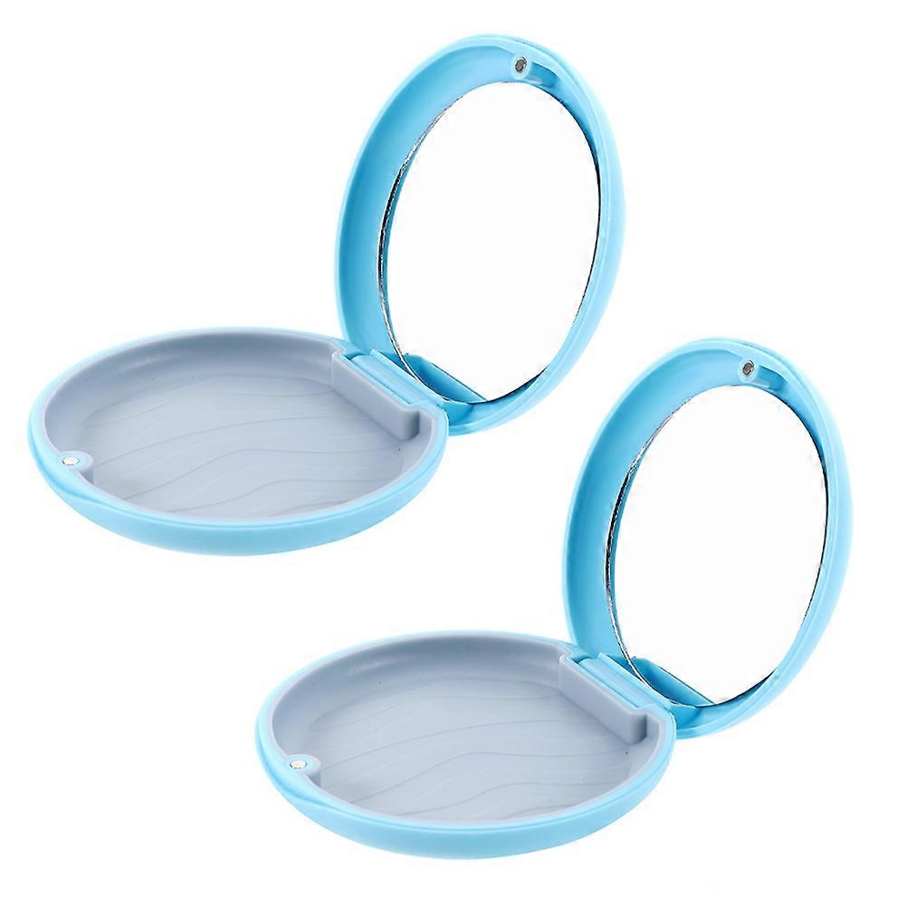 Sleek Design 2Pcs Retainer Holder Case With Mirror Suitable For Business Trips And Household Use In Sky-blue Color For Denture Storage
