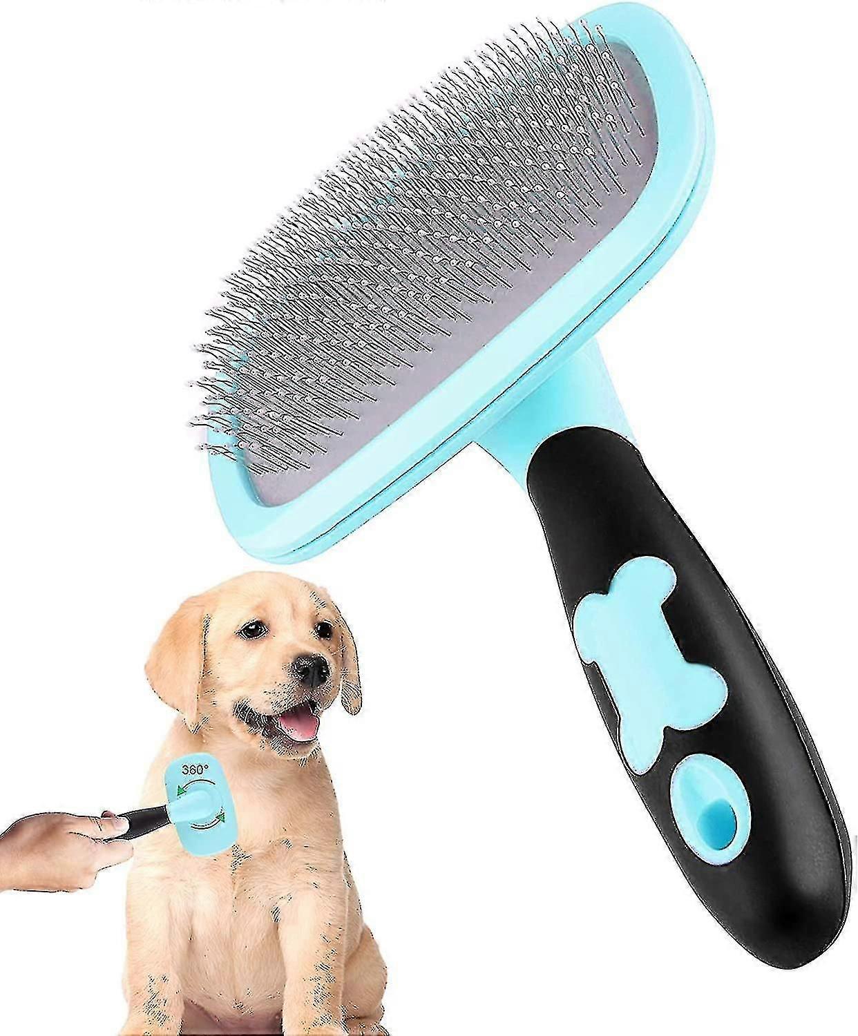 Slicker Brush Large, 360 Degree Rotation Flexible Slicker Brush For Haired Dog, Pet Dog Cat Slicker Brush, Pet Teezer Brush (large, Blue)