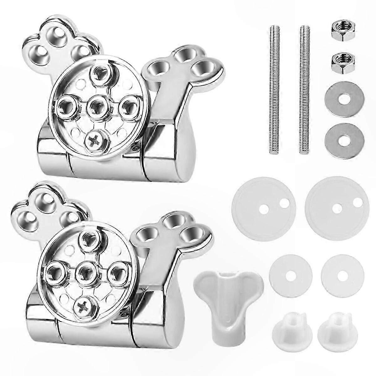 The kit contains everything you will need for a quick and easy installation screws, silicone washers, and more. Note: To ensure all parts are included, please inspect the accessories image and check your package upon receipt. Featuring a state-of-the-art soft-close mechanism, these high-grade toilet seat hinges allow for a gentle and noiseless closing of the lid and seat. With just a gentle push, they smoothly close without making a sound, effectively preventing loud, startling noises and protecting your toilet seat from damage due to sudden impacts. Crafted from superior zinc alloy, these toilet seat hinges are highly durable and built to last. They are rust-proof, non-oxidizing, resistant to deformation, and maintain their appearance over time. This makes them a hygienic choice for long-term use, as they are easy to clean and maintain. Beyond functionality, these zinc alloy toilet hinges offer a sleek and modern appearance. They feature a unique plum-shaped design with a smooth surface and metallic silver finish that adds a contemporary touch to any bathroom decor. Ideal for installation in bathrooms, hotels, and more. With a universal size, these toilet seat hinges are designed to fit all types of toilet seats. From standard residential seats to commercial models, these hinges provide smooth and silent operation. Upgrade your toilet seat with ease and style using this premium toilet seat hinge replacement kit. Material: Zinc alloy Color: Silver Package Contents: 1 set toilet accessories Note: Light reflection and different displays may cause the color of the item in the picture to appear slightly different from the real thing. Measurement may vary by +/- 1-3 cm.