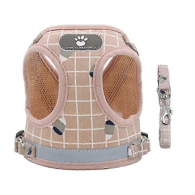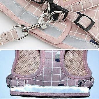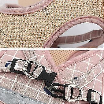 Soft Mesh No Pull Dog/Cat Harness and Lead Set for Walking, Escape Proof Dog Vest Harnesses for Puppy Small Animals/Cats, Easy Fit(L,Grid-Pink)