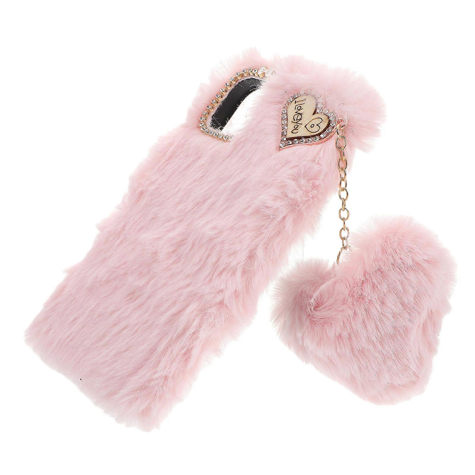 Soft Plush Phone Case Cozy Protective Cover 2Pcs Pink Heart Ball Accessory