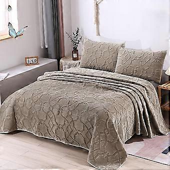 Soft Twin Bedspread Set Velvet Quilt Set Multicolor 3Piece Twin Size Khaki 270x230 cm