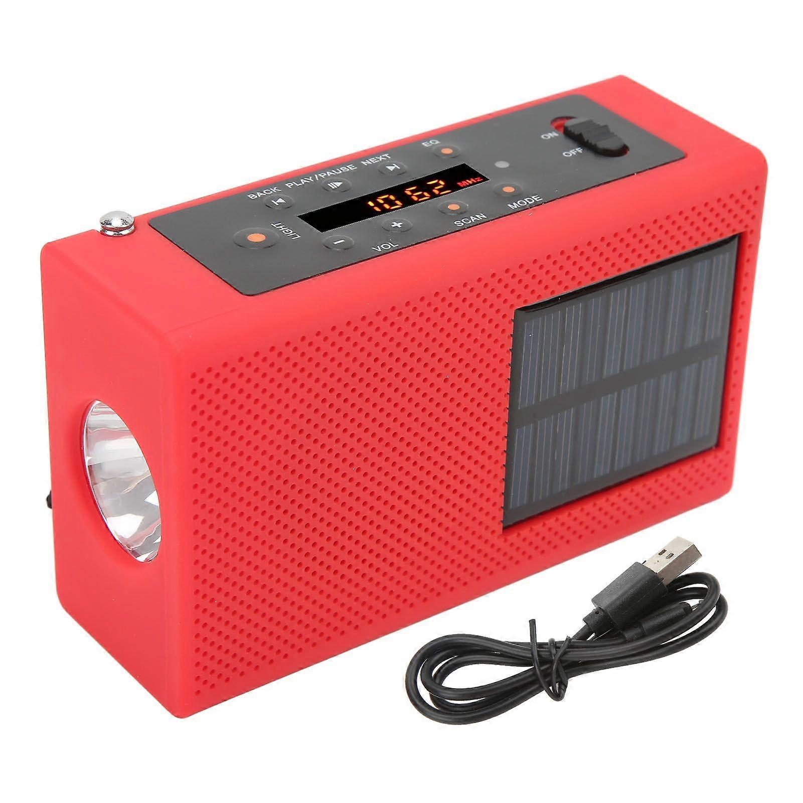 Solar powered emergency radio with USB charging and waterproof design