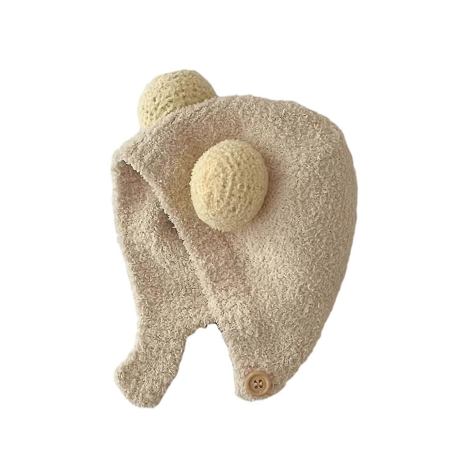 Fall Winter Children Hat Knitted Cartoon Ear Decor Thick Soft Elastic Button Closure Unisex