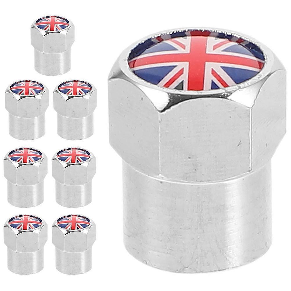 Stainless Steel Tire Valve Stem Caps with UK Flag Design for Car Use Multi Color Fits Most Tires 8 Pieces