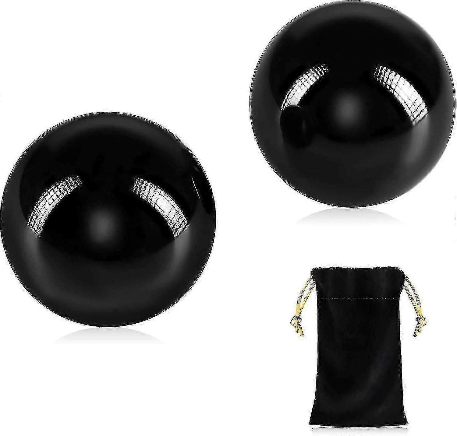 2pcs Black Obsidian Baoding Balls for Stress Relief,Chinese Health Massage Exercise Balls with Pouch,Suitable for Zek Brand (1.57 Inch)