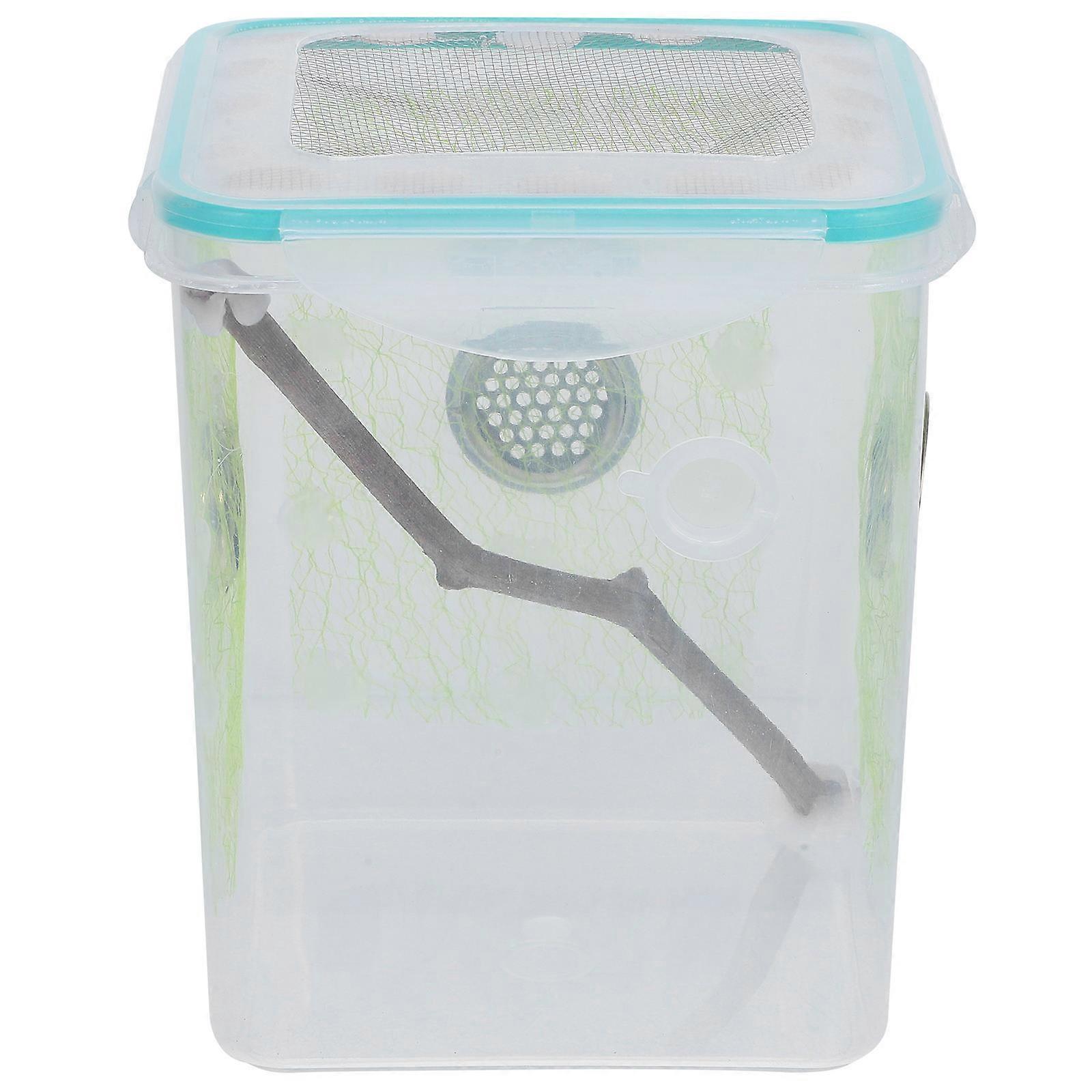 Sturdy Multi Reptile Feeding Box with Vent Holes for Spiders and Crickets Clear Plastic Wood Design 6.5 x 4 x 4 Inches