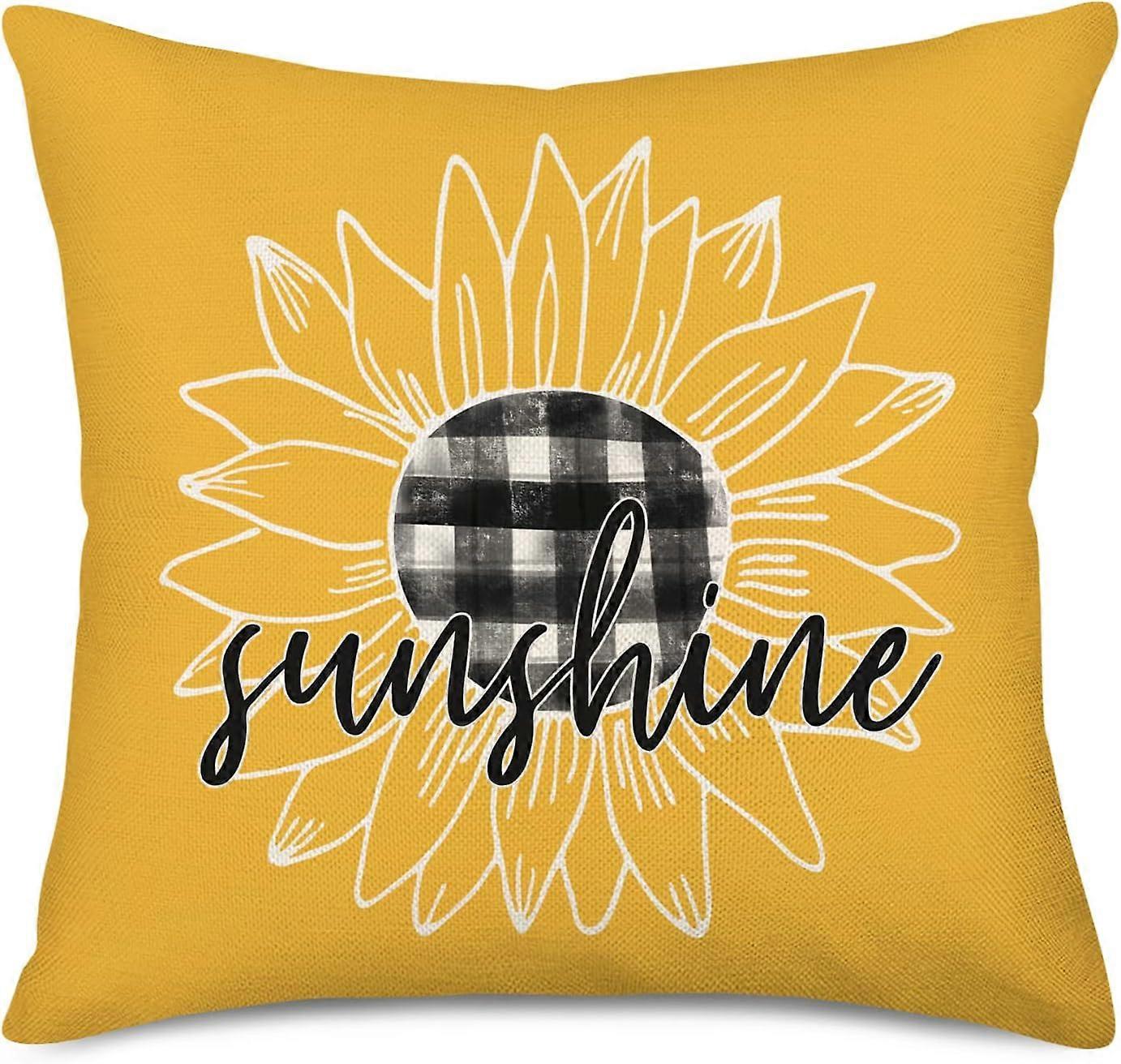 Sunshine Summer Sunflower Pillow Covers 18x18'' Yellow Farmhouse Decor Pillows Cushion Cover Black White Buffalo Plaid with Spring Sunflowers Throw Pi