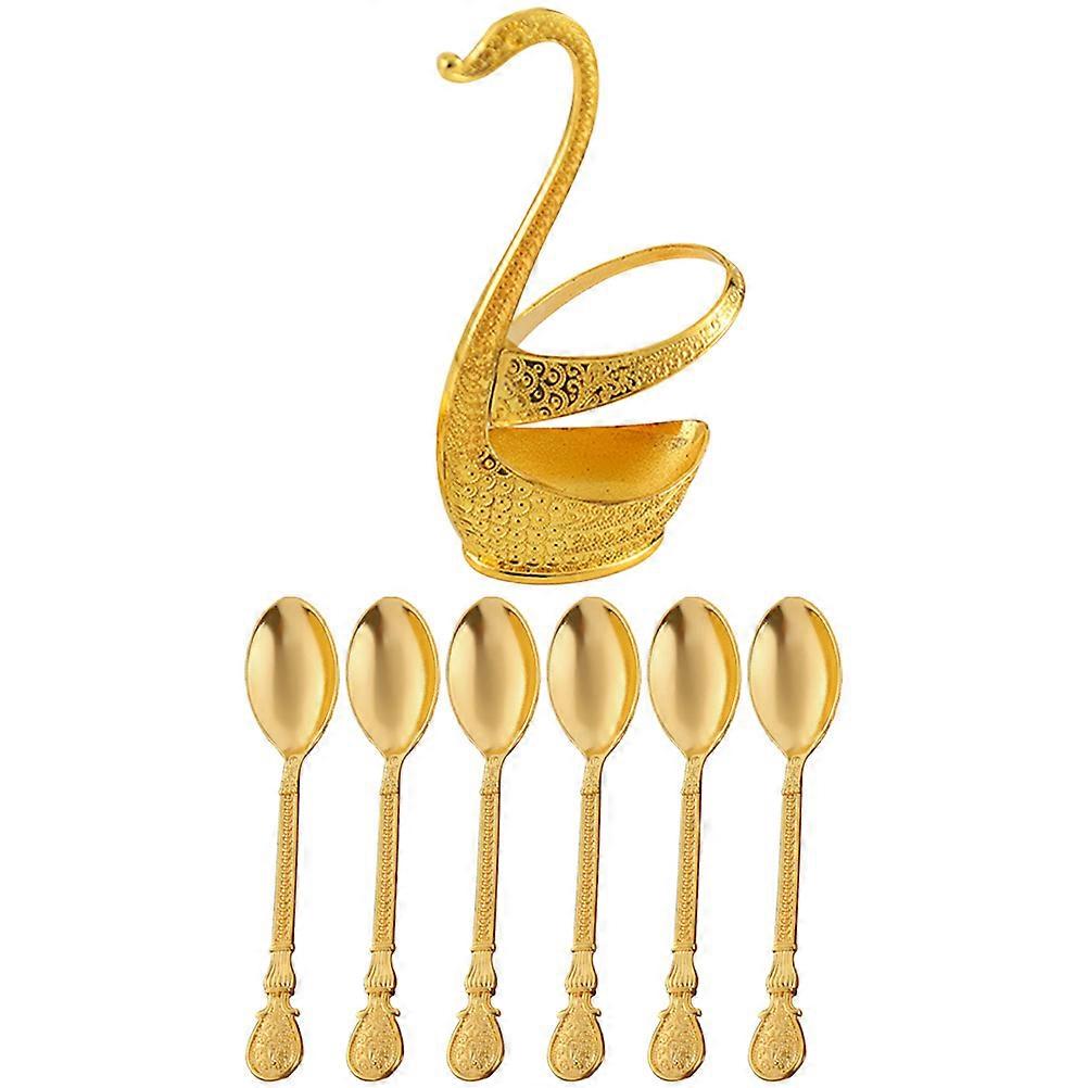 Swan Shape Coffee Dessert Spoon Set 4 Sets For Daily Dining Elegant Golden Tableware Holding