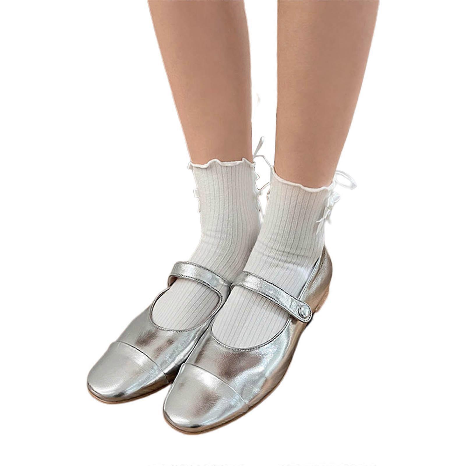 Sweet Casual Foot Wearing Cotton Short Sock Bandages Bows Solid Color Y2k Spark Stocking for Summer Daily School White One Size