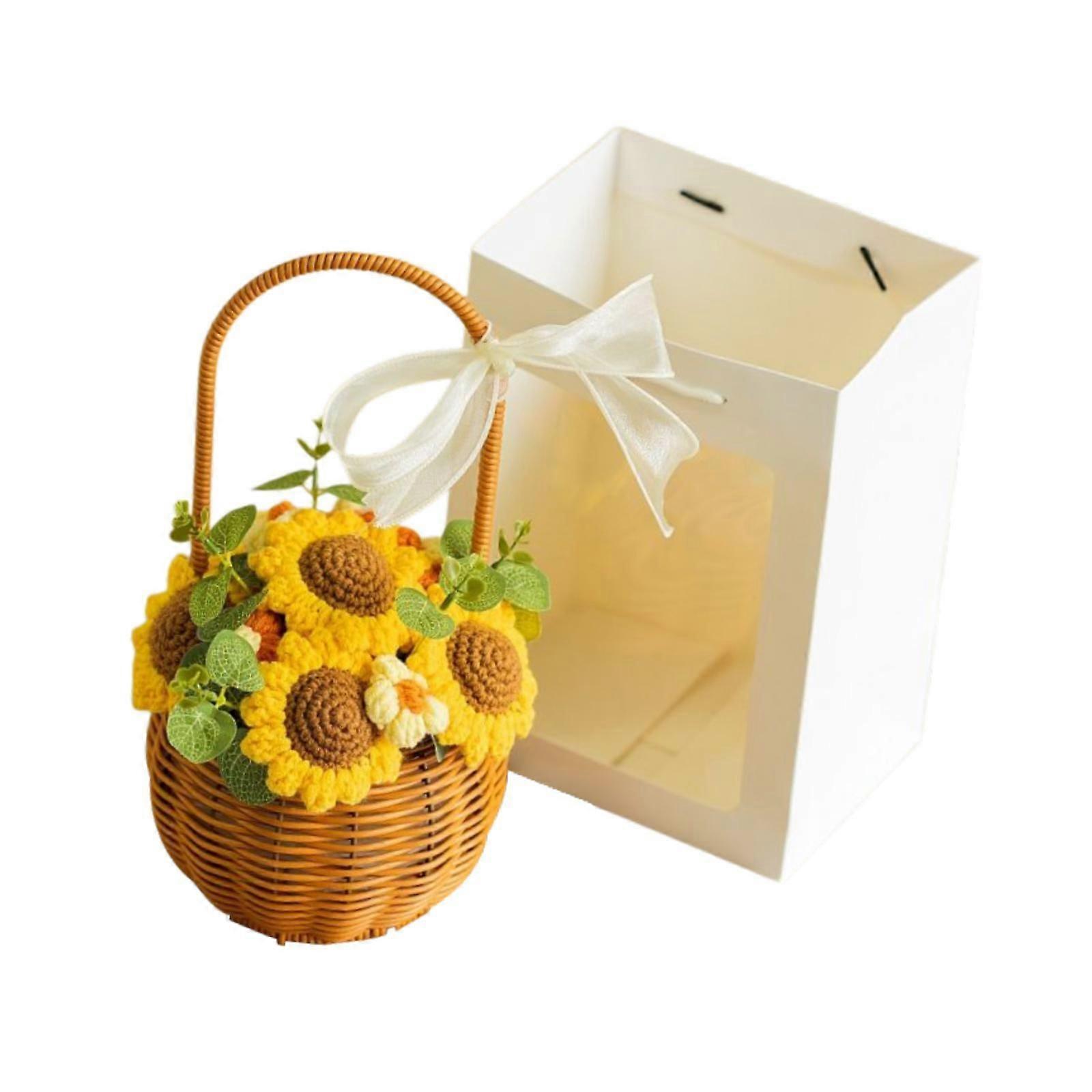Crochet Flowers Mother's Day Gift Knitting Flower Basket for Anniversary Mom Sunflowers
