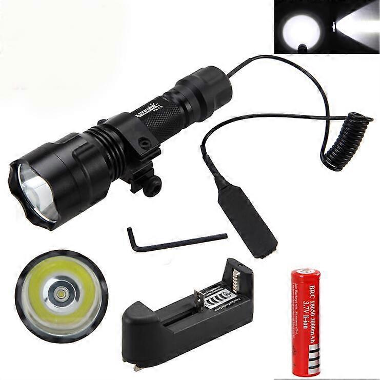 Tactical Light 2500lm T6/Q5 LED Torch Hunting Light + Mount +Pressure Switch+18650 Battery+Charger