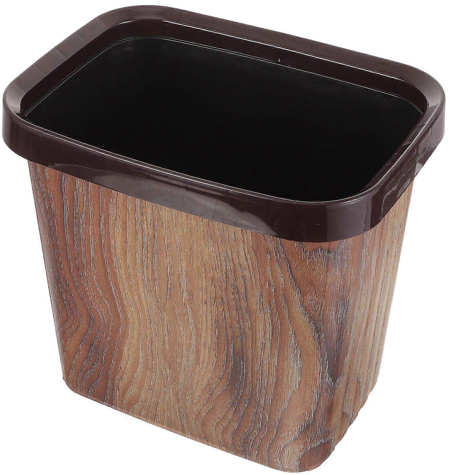 Imitation Wood Trash Bin Retro Style Garbage Can For Family Use In Bedroom Kitchen And Bathroom 1Pcs
