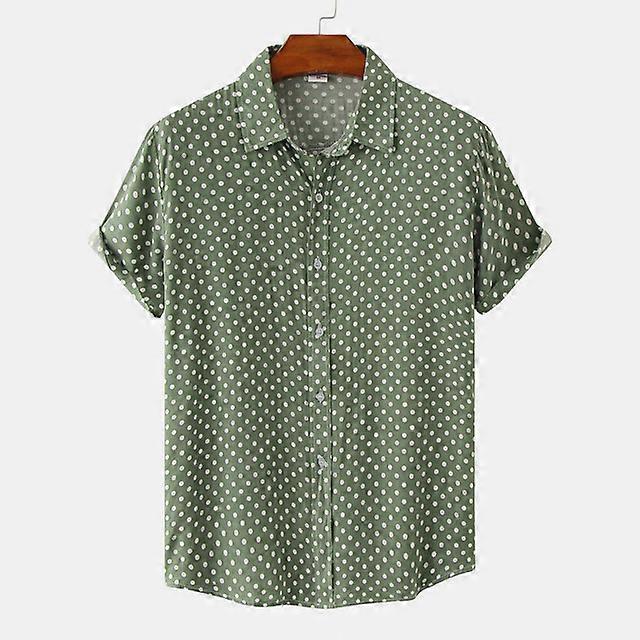 Designer Men's Shirt Summer Leisure Ethnic Cotton Linen Men Shirt Polka Dot Print Lapel Short Sleeve Shirt Streetwear camisas