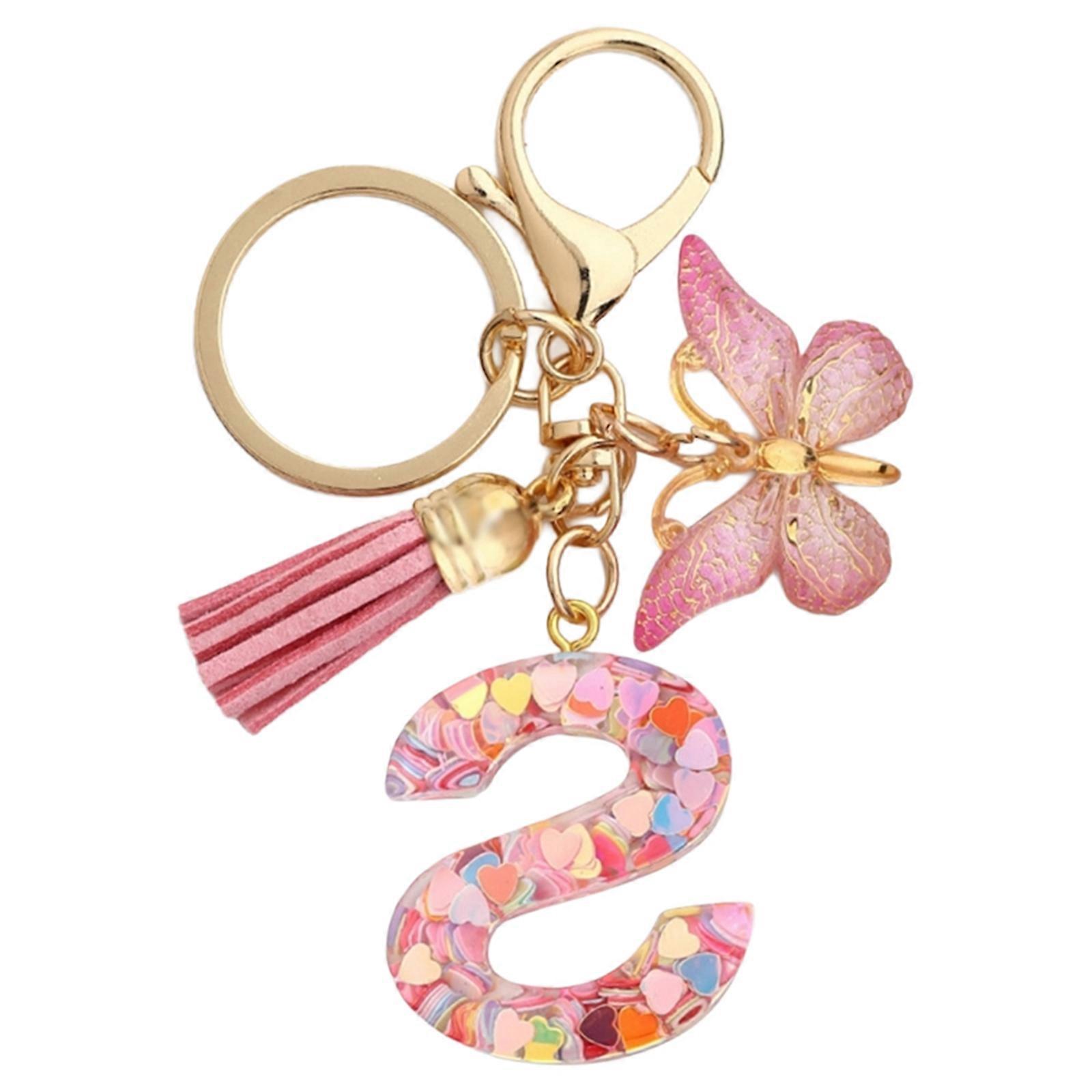 Tassels Butterfly Pendant Charm Keyring Colorful Heart Sequins Initial Letter Keychain for Backpack Handbag Car Key Multicolor