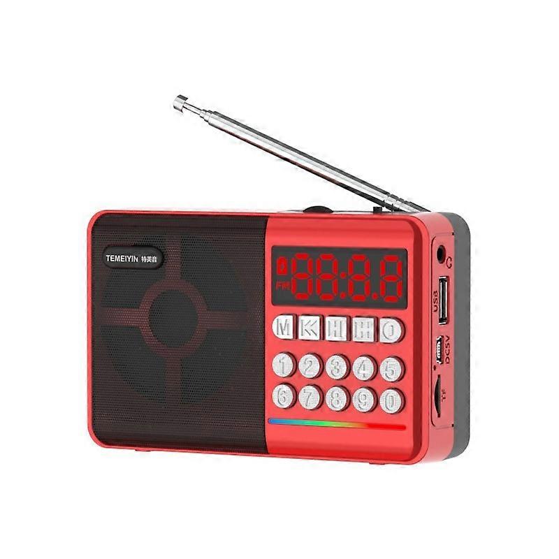 TEMEIYIN LED Digital Display Card Bluetooth Radio Speaker Morning Exercise Portable Player, Color: Red with Light