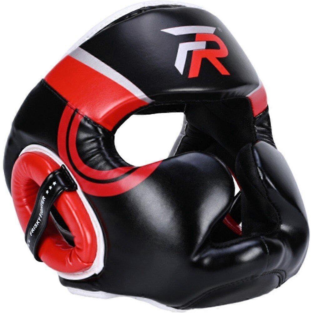 Thickened Boxing Headgear for Forehead and Ear Protection, Full Face Guard for Muay Thai Training, Adjustable Size, Black Red