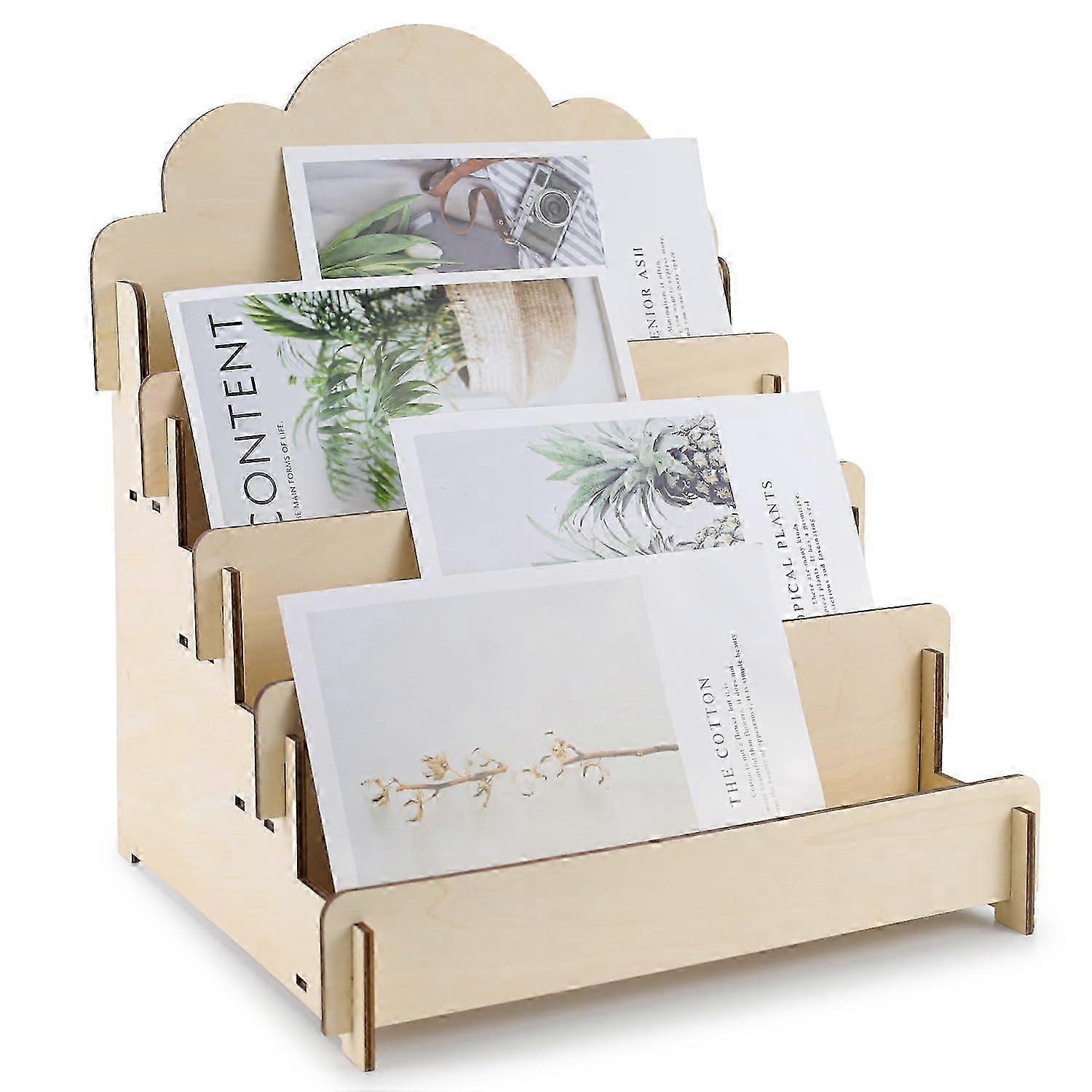 Tiered Greeting Card Display Stand - Wooden Portable Card Rack for Retail Counters, Trade Shows, and Vendor Showcases