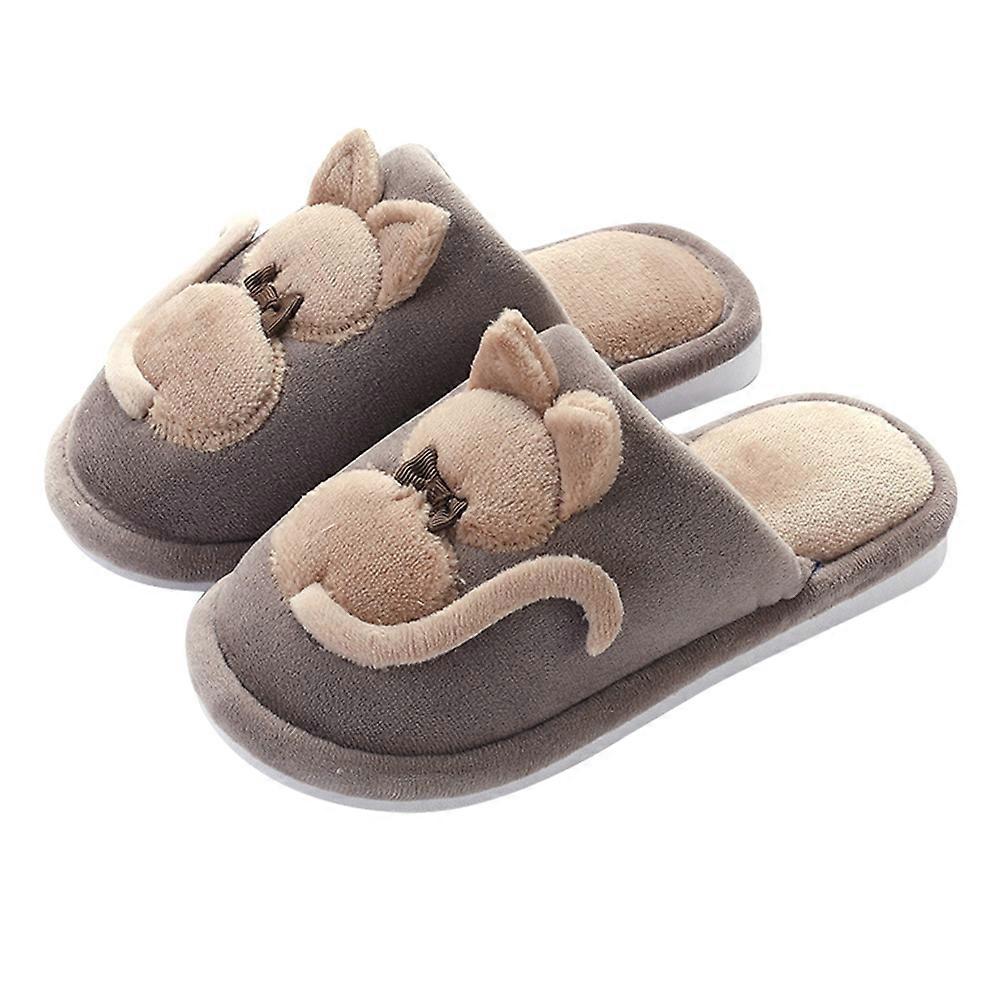 Toddler Girl Slippers Fuzzy Cat Shape Plush Warm Anti-Slip Children Slippers 21Cm Inner Length Autumn Winter Brown 1 Pair