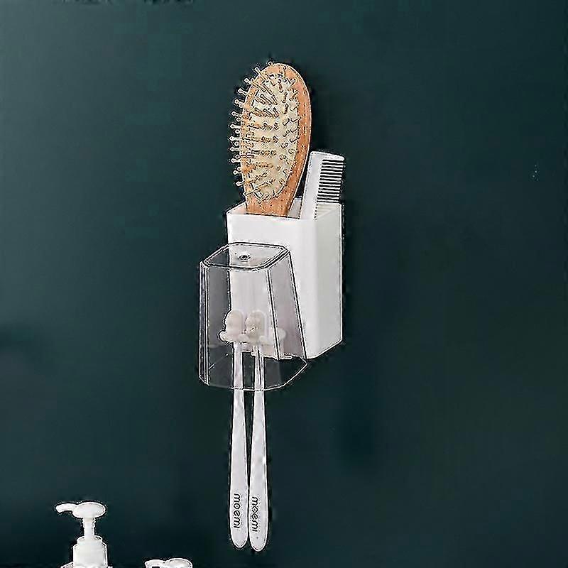 Toothbrush Organizer with Toothpaste Squeezer and Cup for Bathroom Wall Mount Storage Solution