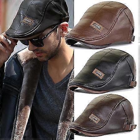 Top Pu Leather Newsboy Cap Men Duckbill Visor Hat Winter Autumn Warm Flat Caps Man Breathable Outdoor Berets