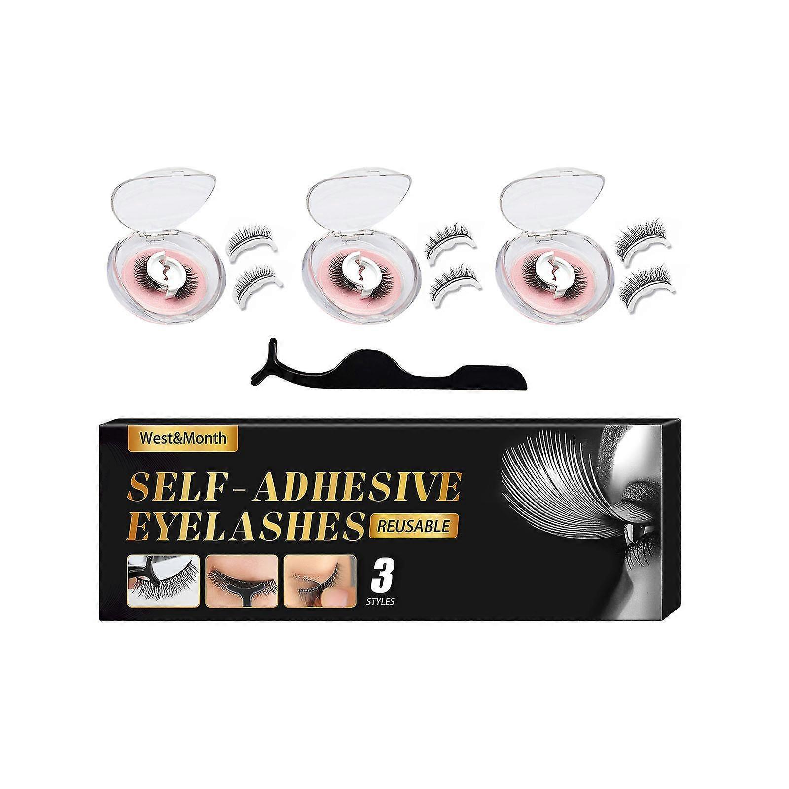 Reusable Self-adhesive Eyelashes Without Glue Natural False Eyelashes Slim Longer And Longer Eyelashes Makeup Thicker False Eyelashes (pack Of 3)