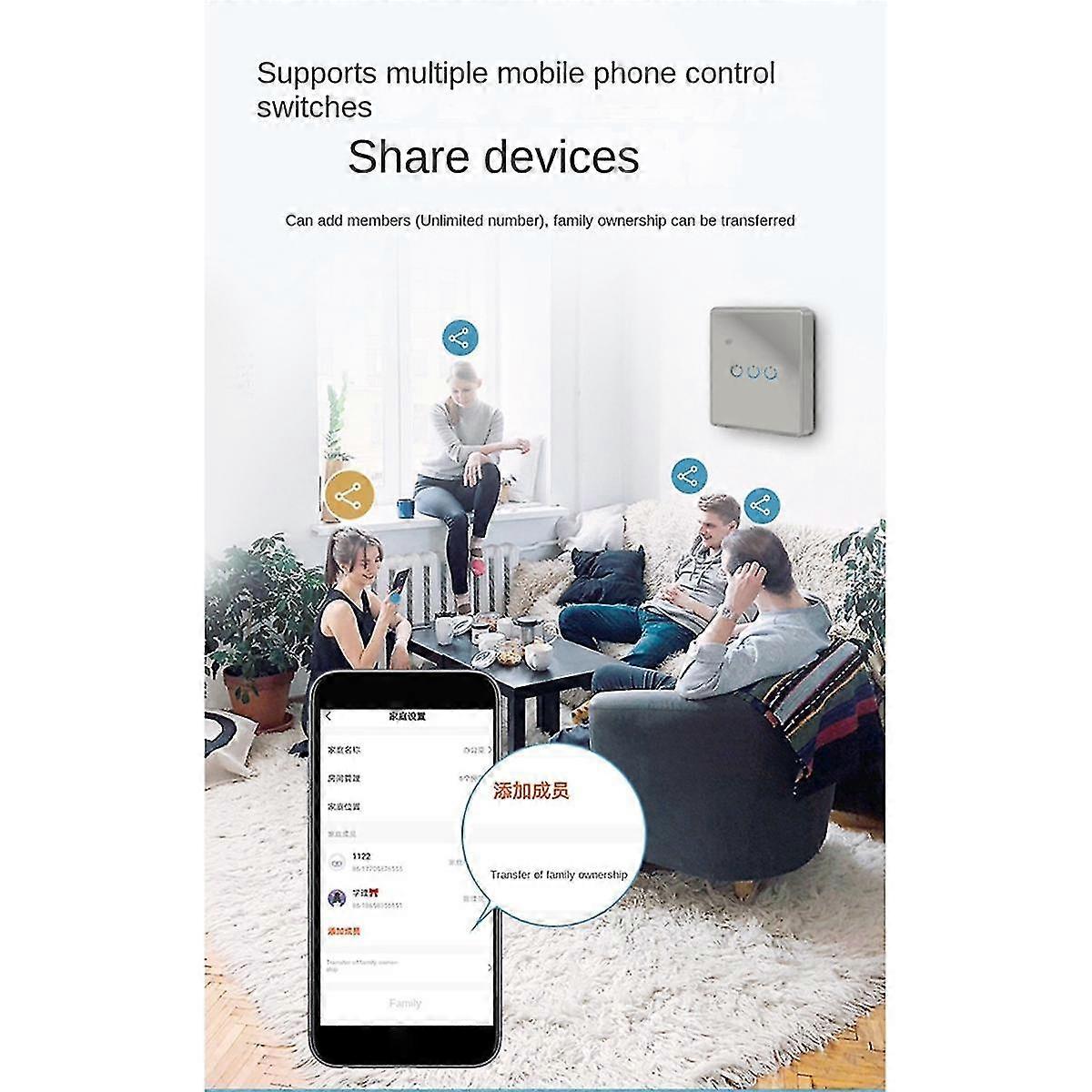 Tuya Wifi Smart Switch Touch Light Switch Zero Fire Line 2 Switch Grey