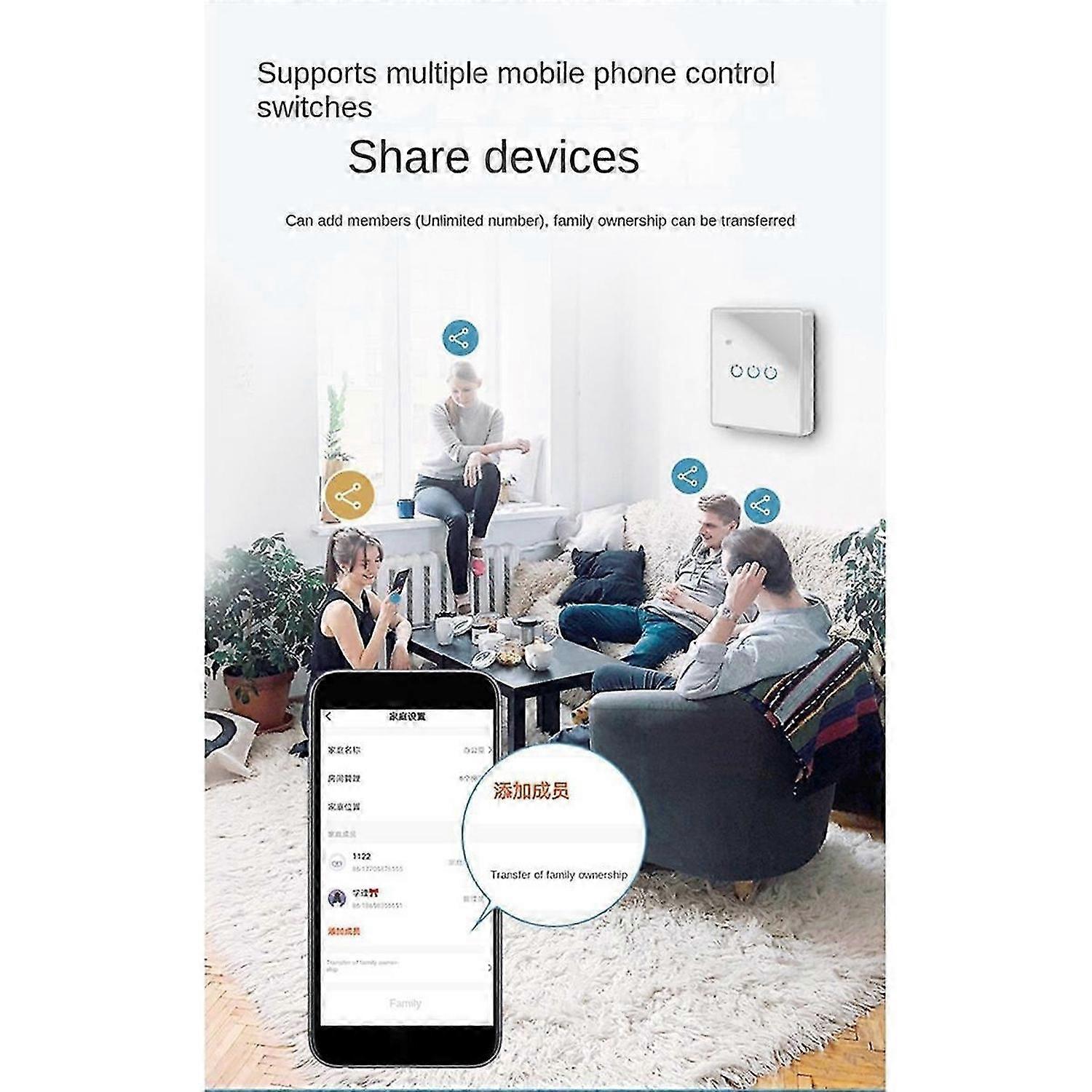 Tuya Wifi Smart Switch Touch Light Switch Zero Fire Line 3 Switch White