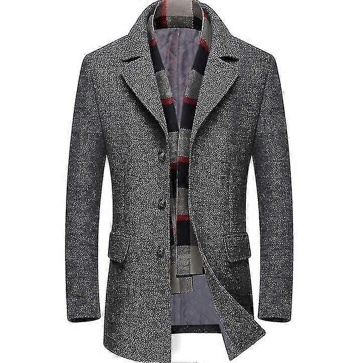 Men's Short Slim Woolen Coat With Free Detachable Scarf