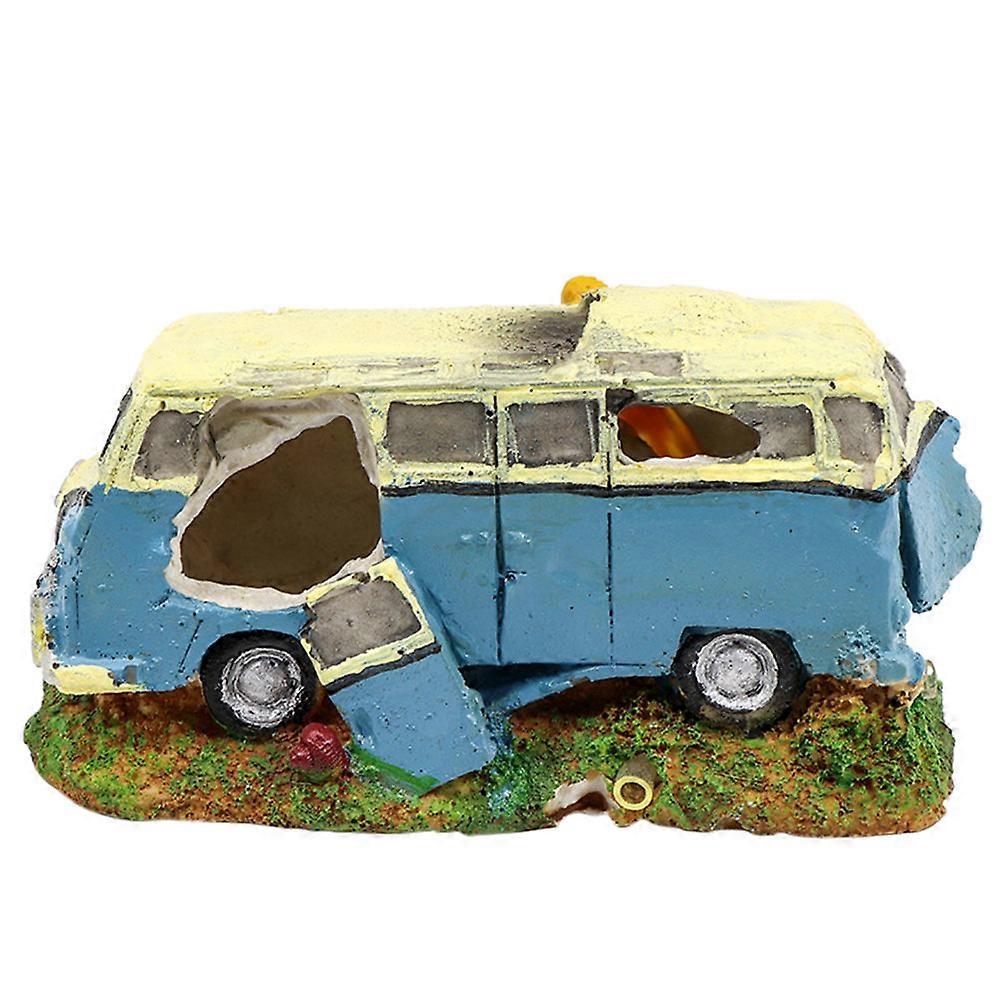 Underwater Scene Aquarium Decor 14.00X7.80X7.50CM Simulation Bus Shape Ornament 1Set