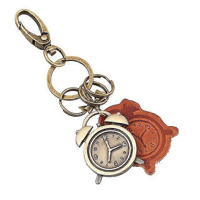Vintage Clock Pattern Leather Keychain For Kids