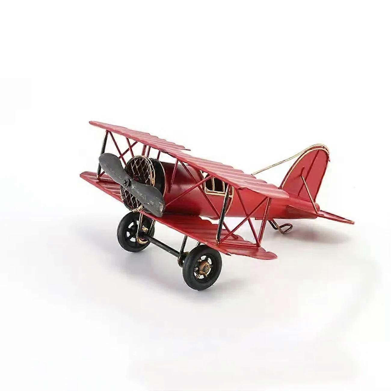 Vintage Metal Airplane Model-WWII-Inspired Biplane Replica,Handcrafted Iron Art Decor,Ideal for Office Desk & Home Library Display,No Power Required