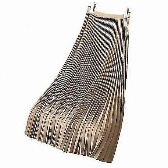 Vintage Midi Skirt for Women - High Waist A-Line Pleated Satin Skirt with Wide Elastic Waistband and Solid Color Design