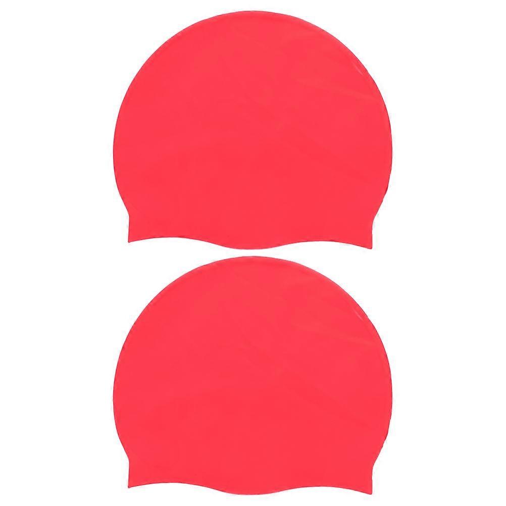 Waterproof Silicone Cap High Elasticity Red Color for Swimming Portable and Durable 2Pcs