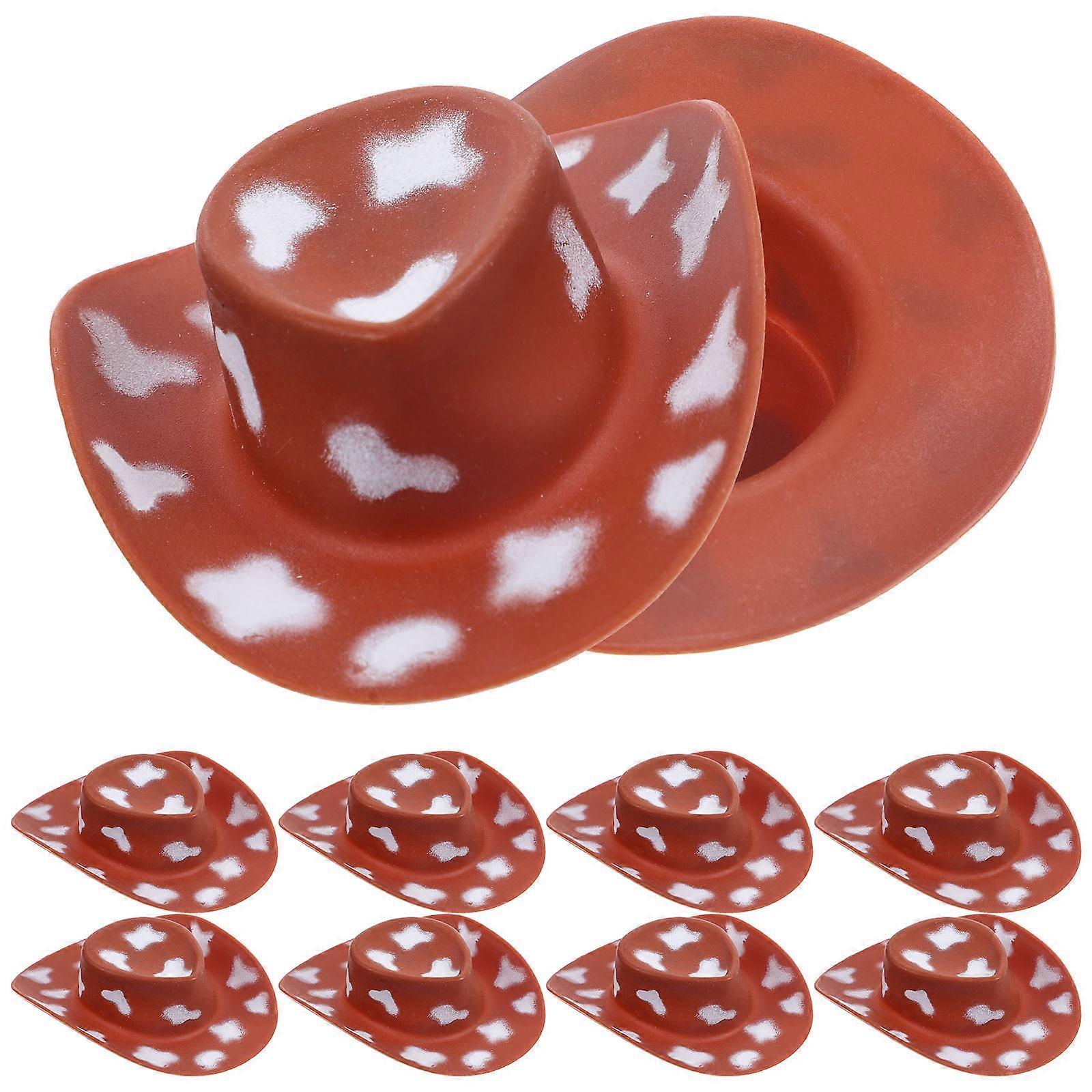 Western Style Mini Hats 10Pcs Cowboy Hat Shape For Children's Day And DIY Projects Brown Plastic Material