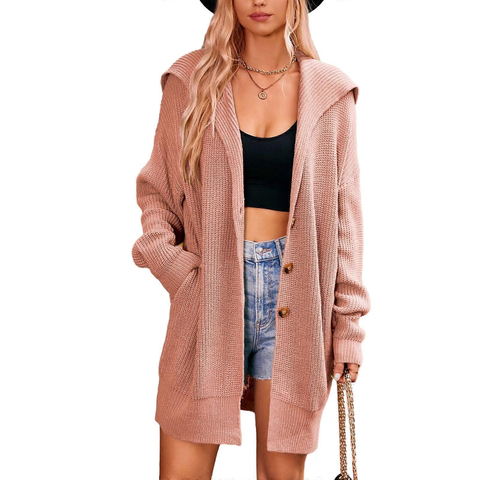 Womens Cardigans Cable Knitted Button Down Lapel Outerwear Sweater Coat Elegant Solid Color Knitwear Coats leather red XL