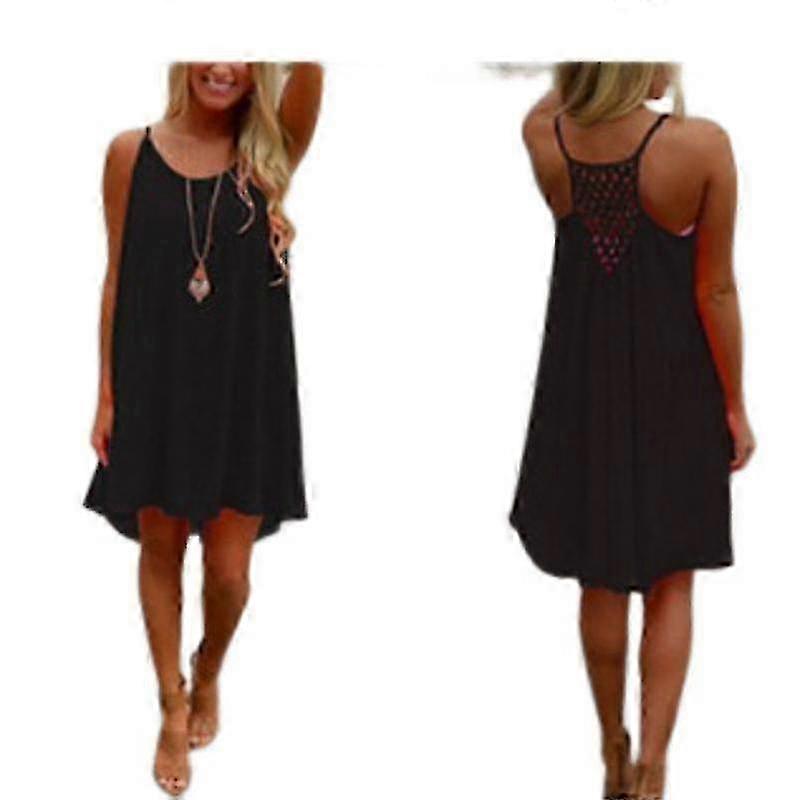 Women's Casual Summer Solid Color Suspender Skirt with Mesh Stitching Back for Chiffon Apparel