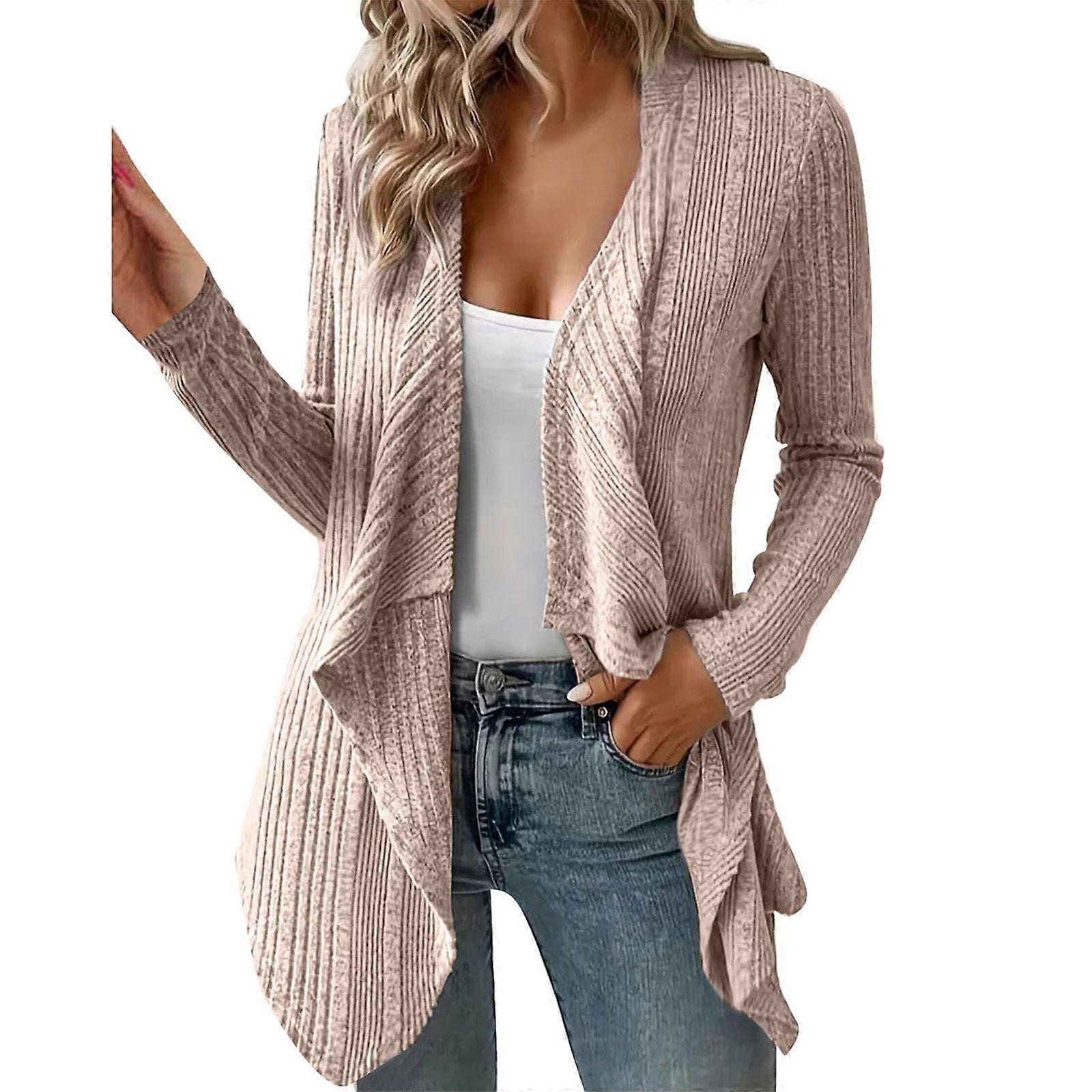 Women's Draped Open Front Lightweight Cardigan Tops Casual Long Sleeve Knit Outerwear Khaki XL