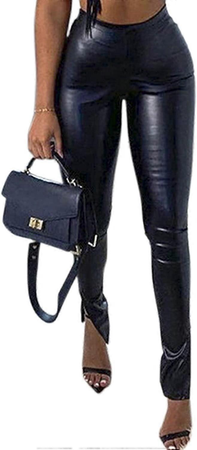Women's Faux Leather Legging Punk Solid Color Pu High Waist Hem Split Pants S-2XL