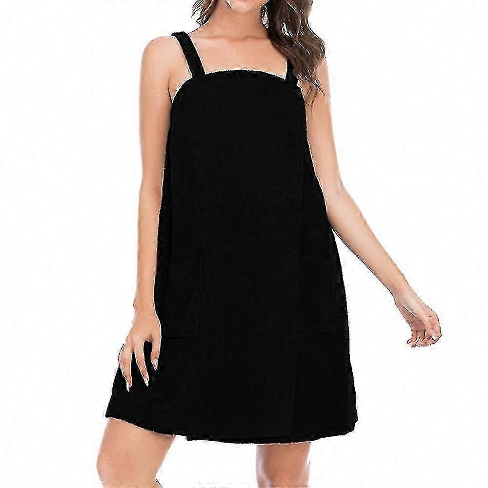 Women's Lightweight Knee-Length Bath Wrap Towel Dress with Straps for Shower and Spa