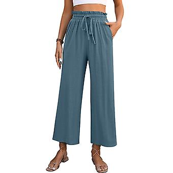 Womens Linen Pants Wide Leg High Waisted Drawstring Casual Flowy Pants With Pockets