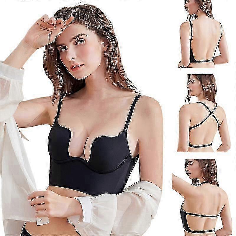 Womens Sexy Deep U Plunge Bra Multi Way Convertible Push Up Halter Low Back Bra Bzsm