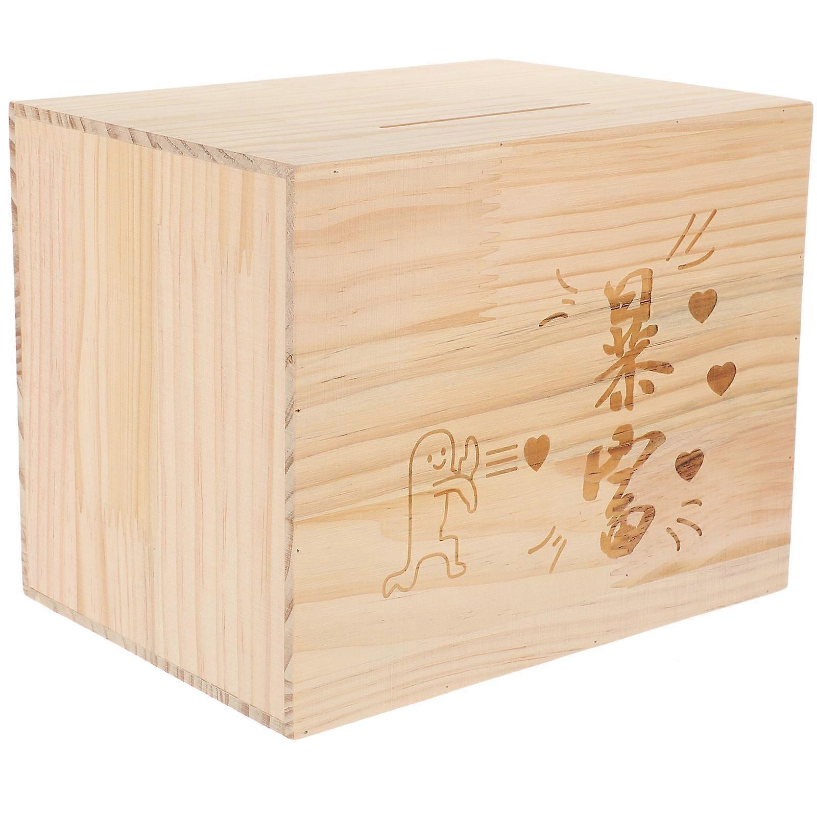 Wood Savings Box Pig Shape Desktop Use Non-Withdrawable Rustic Style Children Home Decoration 20.20X16.00X14.70CM 1Pack