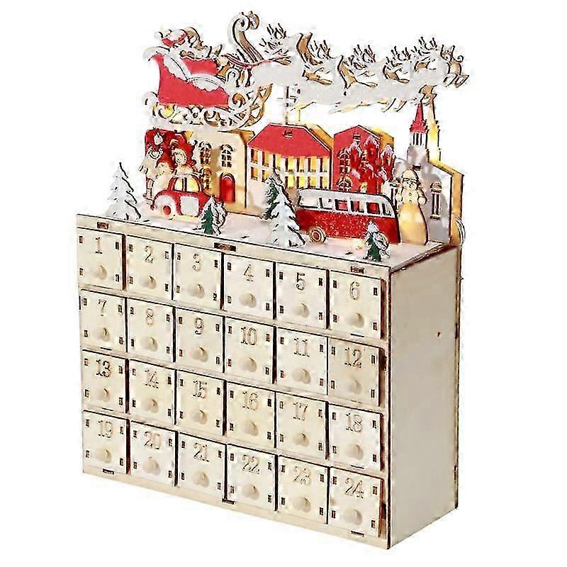 Wooden Christmas Advent Calendar 2022 Christmas LED Wooden Advent Calendar With 24 Drawers 24 Days Countdown To Christmas