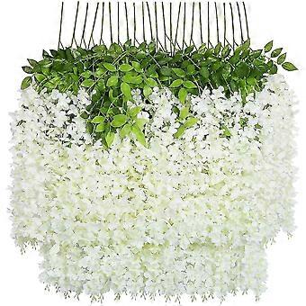 Yapay Sahte Wisteria Asma Asılı İpek Çiçekler Ev Düğün Partisi Dekor (24 adet, Strand, Beyaz)