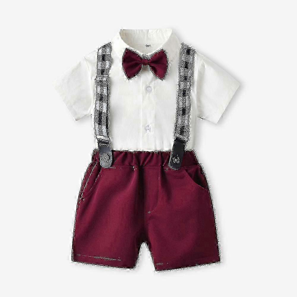 Summer Short Sleeve Baby Boy Formal Suit Gentleman Bow Tie Jumpsuit Suspender Shorts Wedding Tuxedo Suit