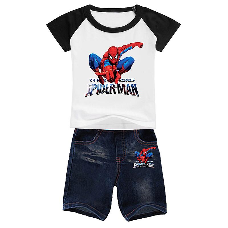 Summer Short Sleeve Tshirt Baby Boy Clothes Set Cartoon Spiderman Girls T Shirts Jeans Pants Suit Children Casual Tops Toddler