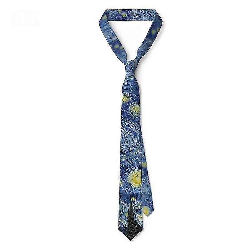 New Fashion Oil Painting Design Neckties For Men Van Gogh Sunflower Starry Night Retro 8cm Wide Polyester Tie Women Accessories-Good