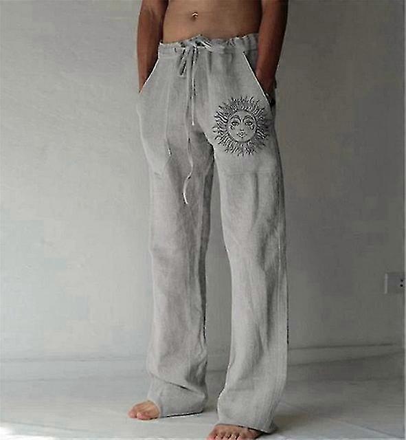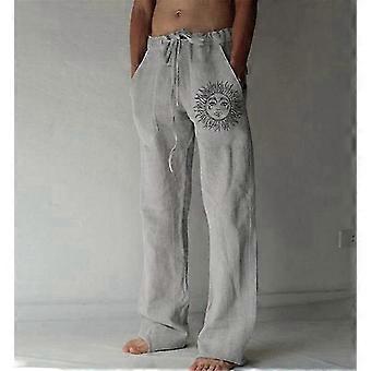 New Cotton Linen Pants Men Fashion Sunflower Print Wide Leg Pant Plus Size 5xl Casual Loose Sweatpants Men Beach Style Trousers