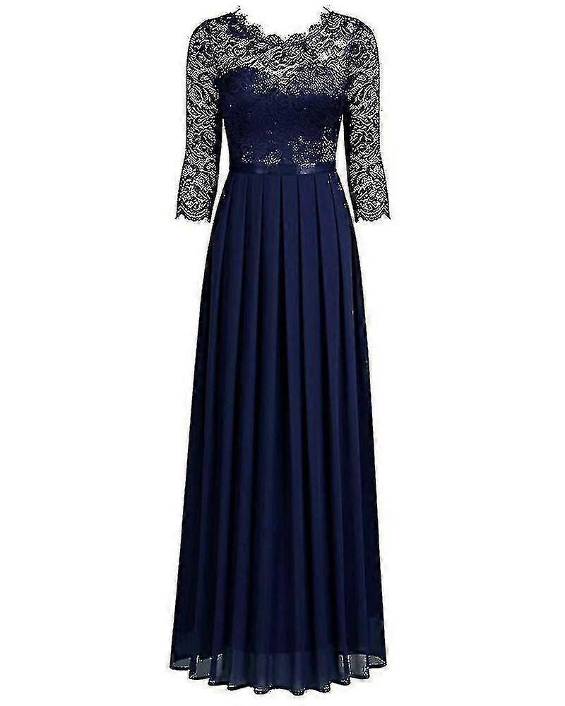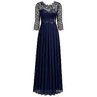 Elegant Lace Long Floral 3/4 Sleeves Party Dress